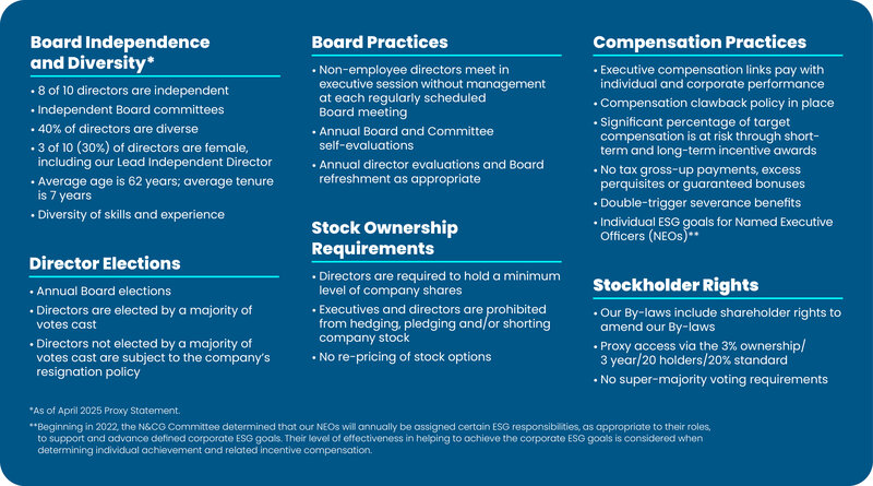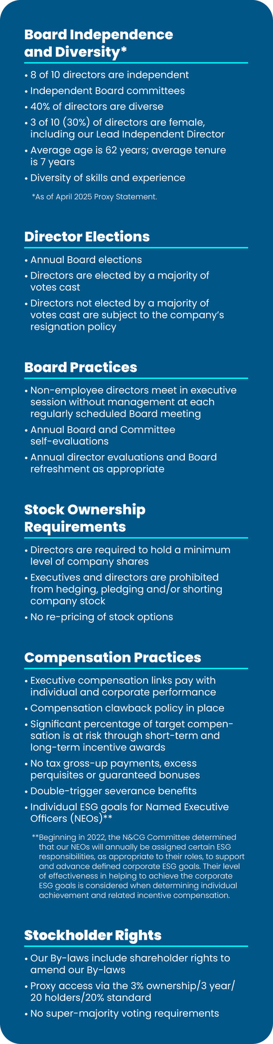 Our commitment to sustainability oversight at both the Board and management levels reflects the importance we place on ESG-driven policies and programs to support our long-term strategic plan.