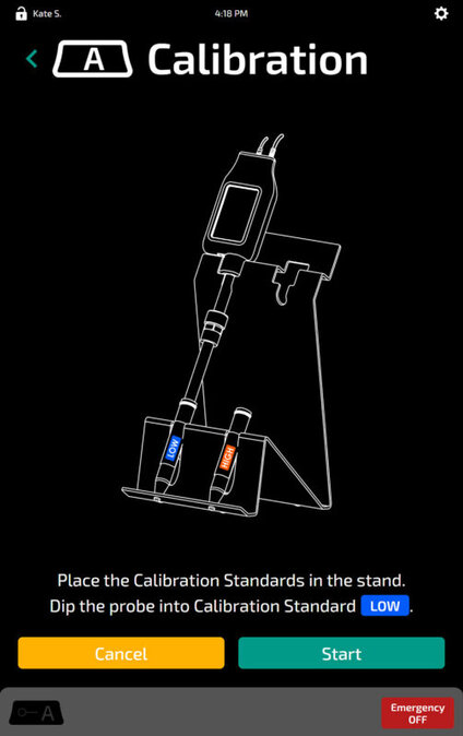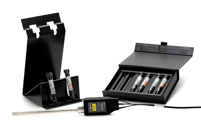 The probe is calibrated using the two standards in the Calibration Kit. Calibration is performed prior to autoclaving the probe, before each bioreactor run. Each probe has a built-in memory chip that stores its calibration coefficients and verifies that the correct probe was re-attached post-sterilization.