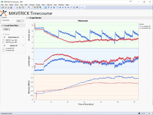 MAVERICK users can quickly visualize time-course data and compare different runs using the JMP statistical software package.