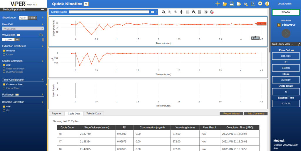 Monitor protein concentration over time with the Kinetic Quick and Kinetic Fix software.