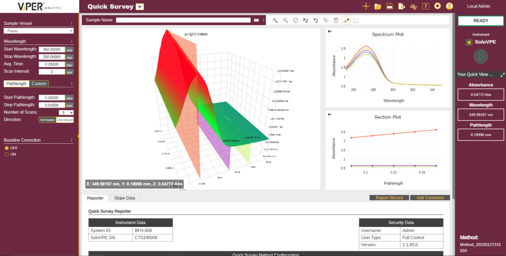 The CTechTM ViPER® ANLYTX platform is designed with an app-based architecture where each app is designed for a dedicated purpose. One software platform for all your analytical needs.  Our software allows for easy interpretation of sample data, providing key insights that are automatically generated from absorbance over pathlength and display slope, R2, wavelength, concentration, extinction coefficient (if known) and specific users results. Everything you need to take action within your process.