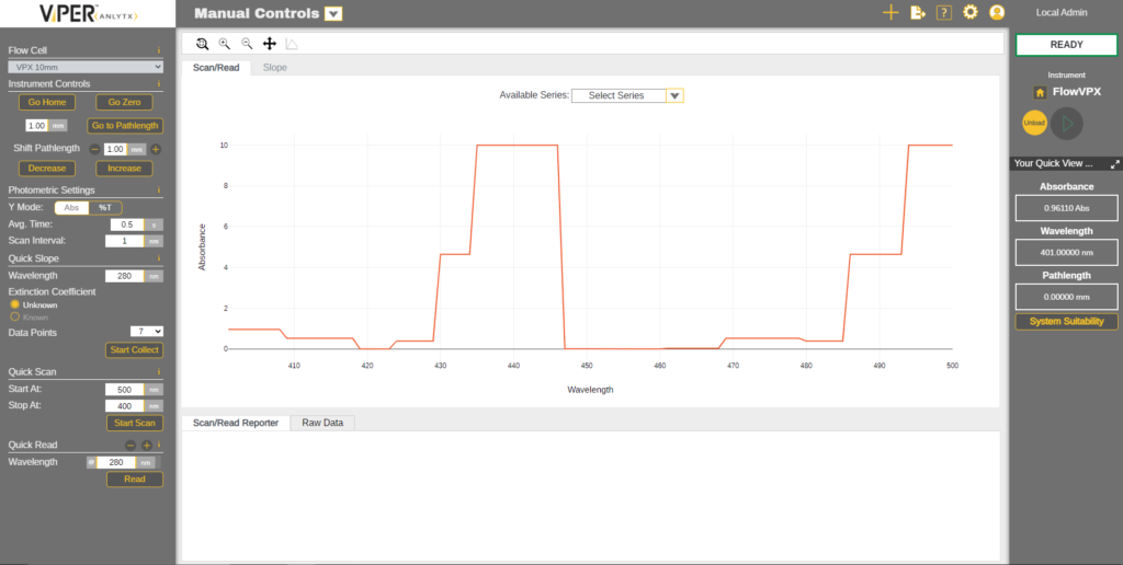 Manually configure your supported variable pathlength hardware settings. Fine tune your variable pathlength device to verify system performance. This application provides troubleshooting tools to make it so you’re never offline. Run individual instructions to verify every component is operational. Take control of your system.