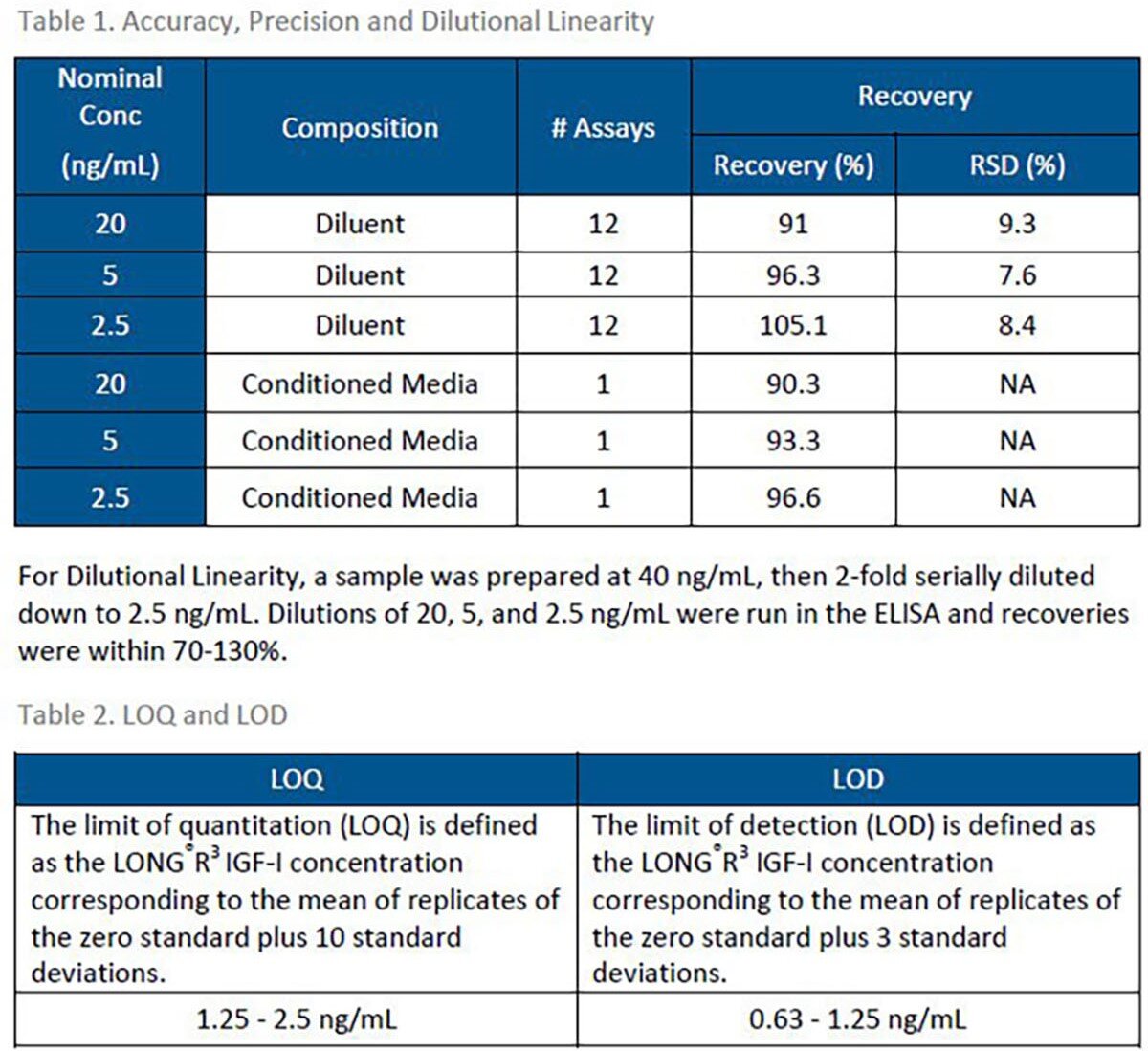 LONG® R3 IGF-I ELISA Kit Performance Summary