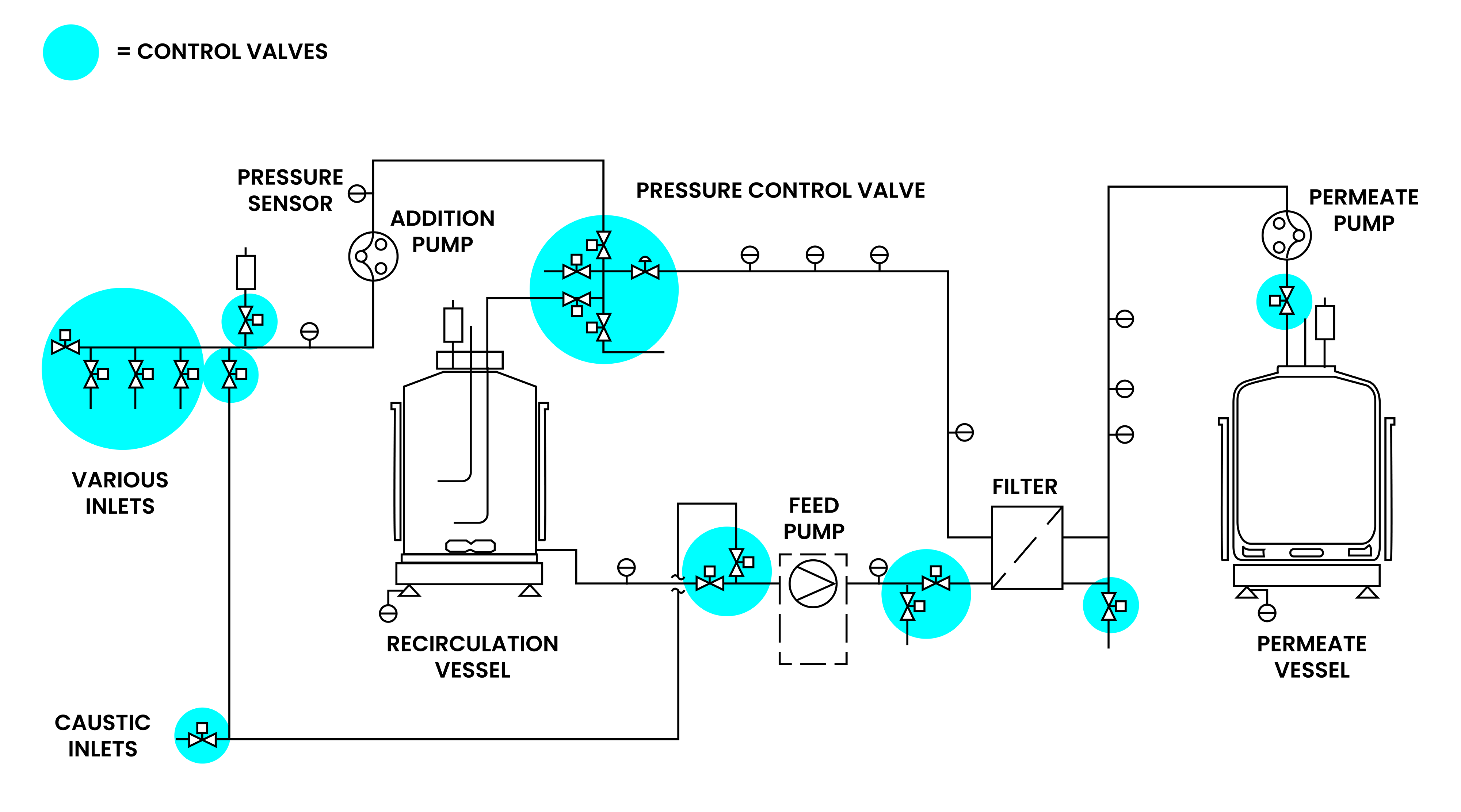 While many traditional single-use TFF systems claim to be “automated” they often require frequent manual intervention by operators due to the limited number of controlled valves available. The more controlled valves throughout the system’s flow path, the greater the degree of automation capability.